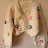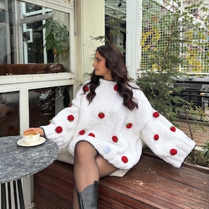 Chunky knit Cardigan Handmade Sweater strawberries cardigan heart